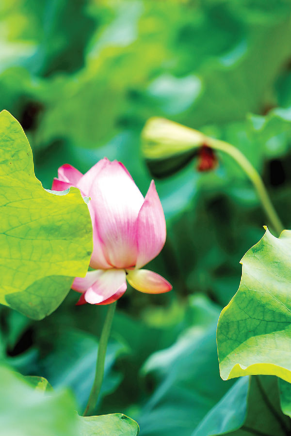 荷尖裙袂飘动,与风对坐粉红的底色锻就初真