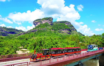 观光车经过大王峰下的武夷宫大桥 (彭善安摄)