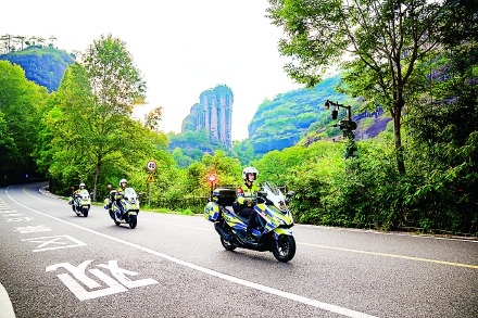 女子骑警队在景区等客流密集区域执勤,为武夷山旅游注入柔性执法力量,增添一道不一样的风“警”线。