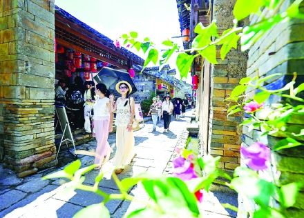 国庆中秋假期,五夫镇兴贤村迎来众多游客。兴贤村旅游资源丰富,拥有兴贤古街、兴贤书院、朱子社仓等朱子文化遗迹遗存,先后获得“全国乡村旅游重点村”“中国美丽休闲乡村”等荣誉称号。 (张行健摄)