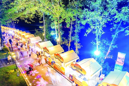 1日晚,为期七天的“月满河山·家国同庆”微醺武夷茶啤嘉年华活动,在武夷山度假区崇阳溪漫游道举办,以茶香、酒香、食香交融的夜间盛宴,打造出可品味、可参与、可沉浸的武夷秋夜经济新场景。