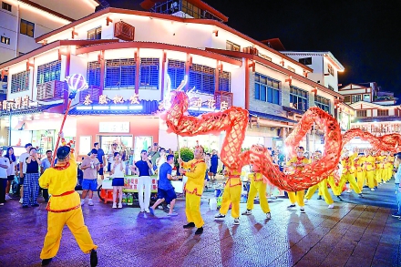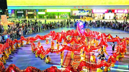 当晚9点,随着阵阵清脆的锣鼓声与悠扬的民乐响起,这条长达200米的长龙便舞动欢腾起来。只见龙身以红金为主色调,龙头缀满闪烁的LED灯珠,在夜色中宛如灵动的星河。上百名舞者身着统一服饰,默契配合舞动长龙,时而盘旋蜿蜒,时而昂首腾飞,长龙“游”过度假区的主街道时,龙尾轻摆带动流光,引得两侧市民与游客纷纷驻足观看。其间,孩子们举着灯笼追着长龙奔跑,老人们笑着用手机记录下这热闹场景,不少游客更是加入欢呼队伍,与舞者互动。月光、长龙、笑脸交织在一起,不仅让传统中秋氛围愈发浓厚,更让来自五湖四海的人们在武夷山的夜色中,感受到了团圆的温暖与民俗文化的魅力。(李健 张萍 陈洁)