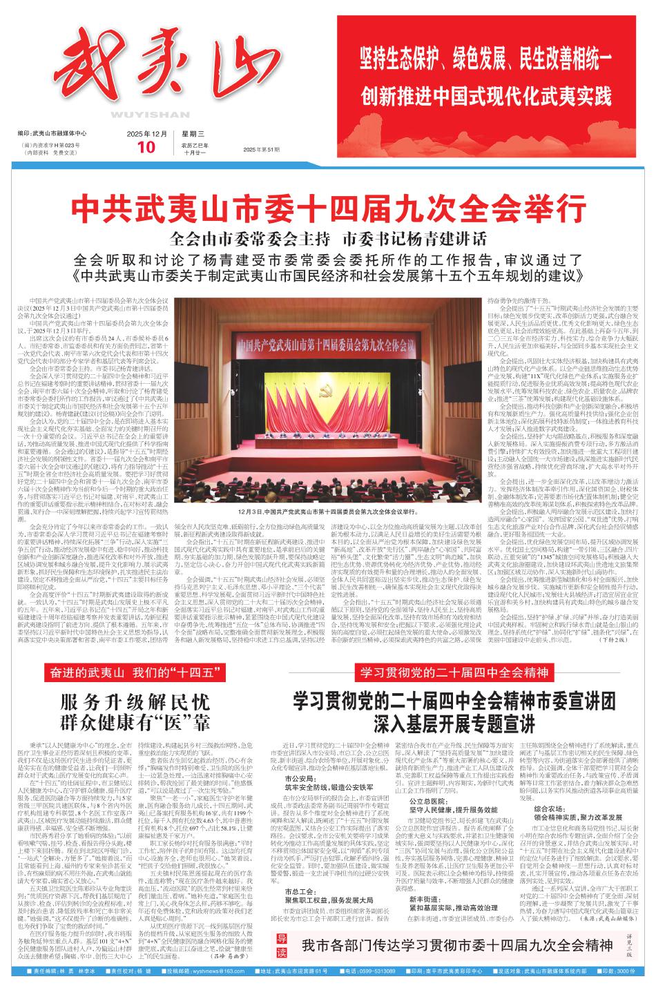 中共武夷山市委十四届九次全会举行