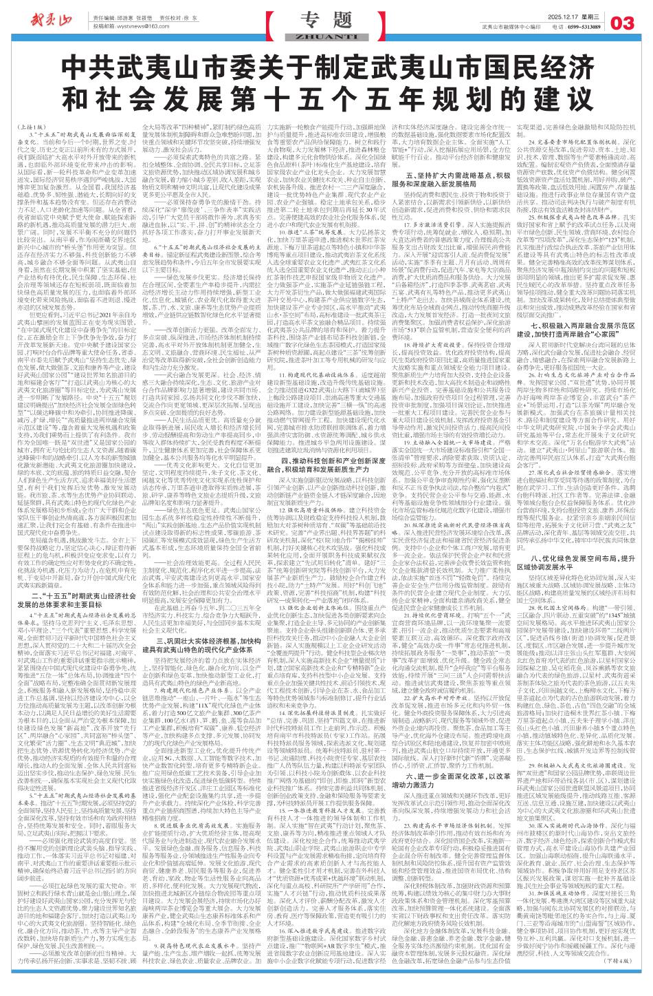 中共武夷山市委关于制定武夷山市国民经…