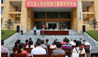 本刊讯(刘高妮)9月1日,平江县人民法院组织召开执行案款兑付大会,为78名申请执行人兑现执行款863万元。
